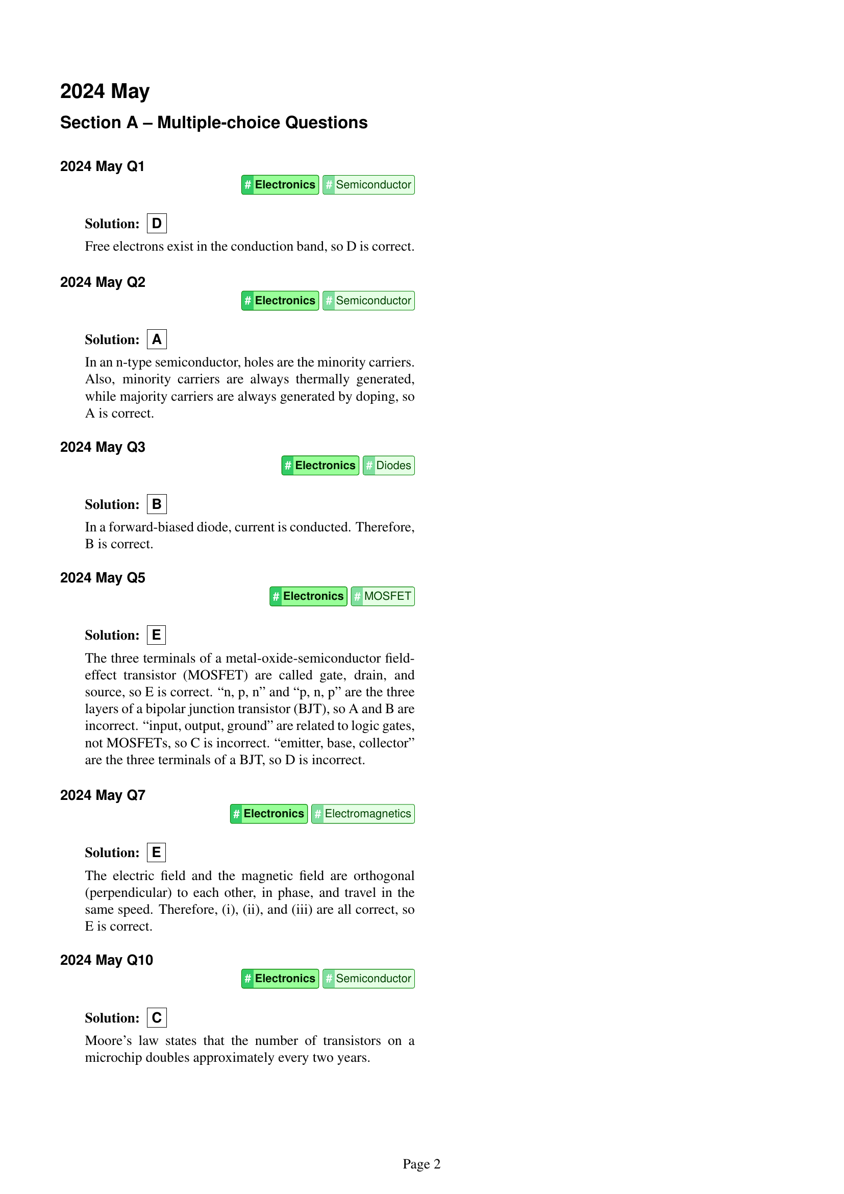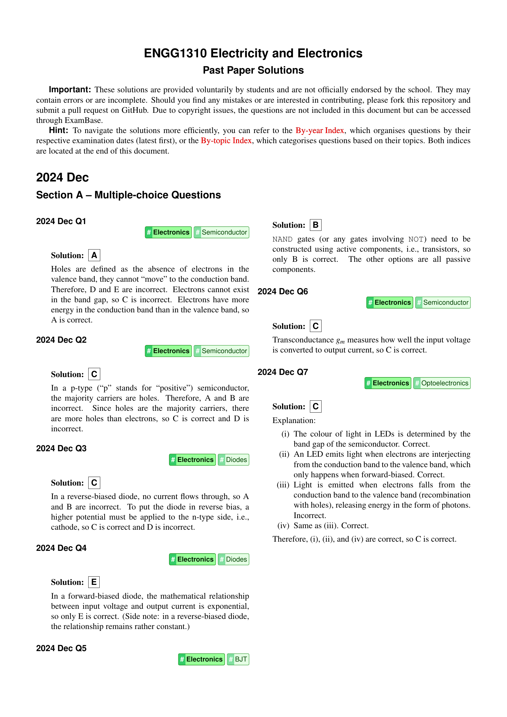 This is a comprehensive collection of past paper solutions for the course ENGG1310 (Electricity and Electronics) covering exams from 2023 to 2024. The solutions are organised by year, with an index for you to query easily by topic.